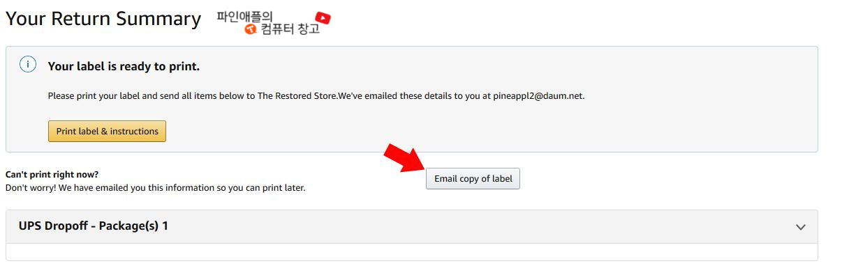 투패스츠에 라벨을 보내야 하므로 Email copy of label을 눌러주세요