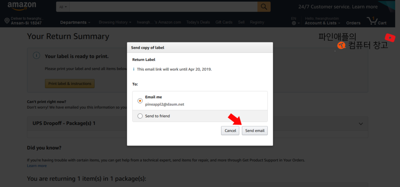 아까 출력해둔 라벨은 "Return Label"에 넣어주시면 됩니다!