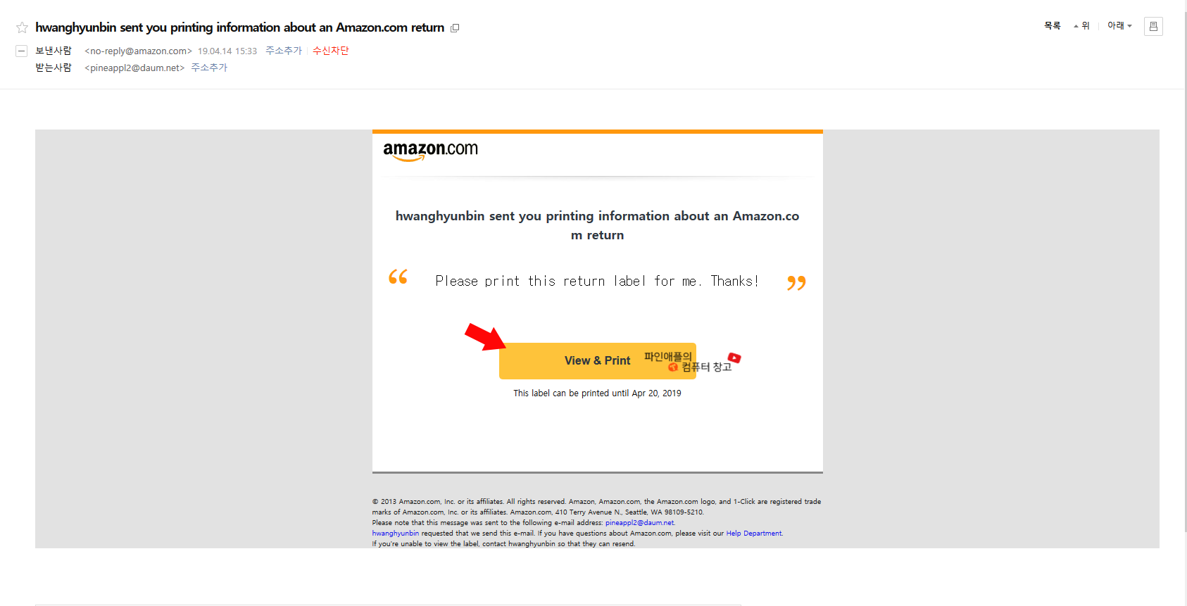 아마존에서 온 메일입니다.