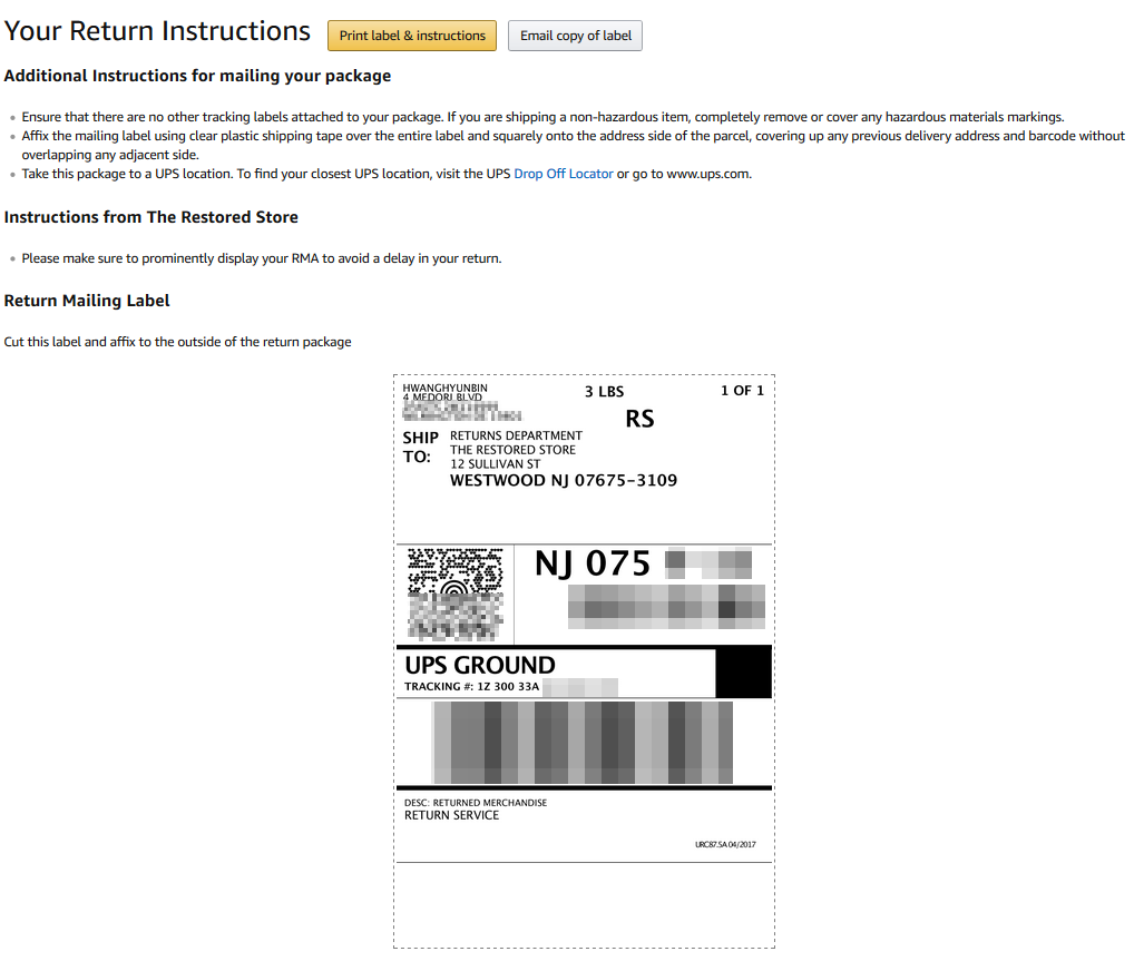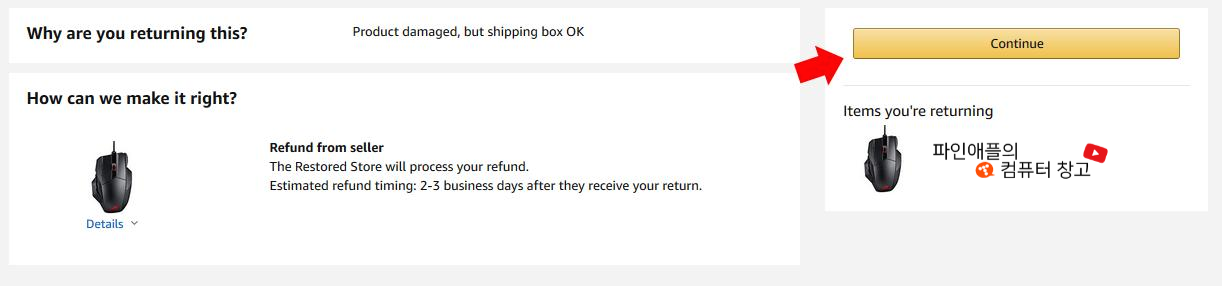 이제 이 사진을 토대로 아마존 판매자에게 연락하여 교환 신청을 합니다.