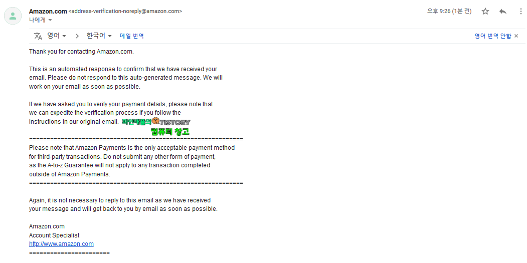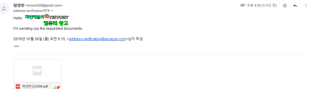 "그래서 아마존측에서 본인 카드임을 증명하는 카드 소유자 증명서를 보내달라고 합니다"