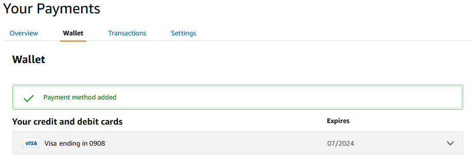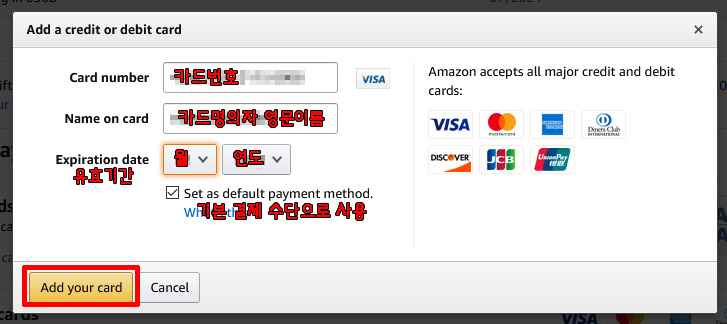 빌링어드레스까지 입력이 완료된다면 위처럼 카드가 뜨게됩니다.