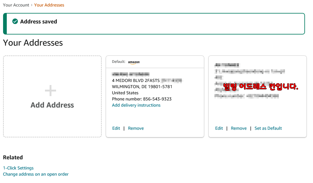 Add address를 클릭하시면 주소 입력이 완료됩니다.