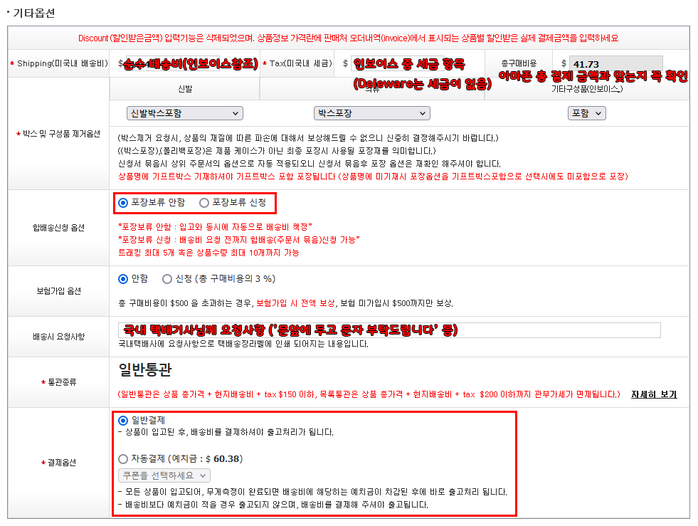 "일반 결제"는 모든 상품이 도착되어 배송비가 책정이되면 문자로 결제 금액을 안내합니다.