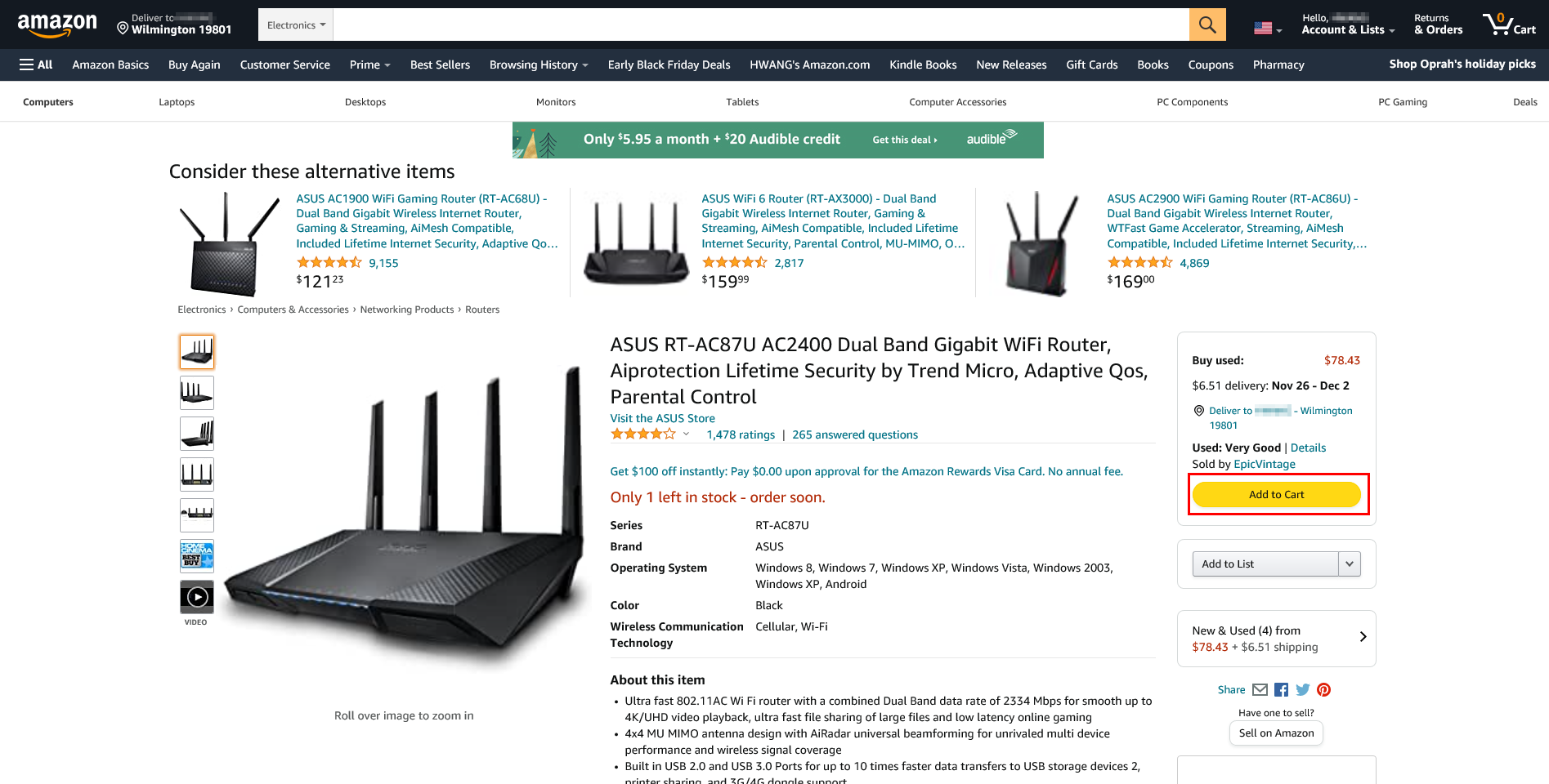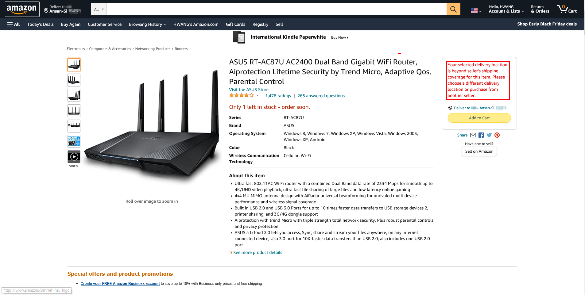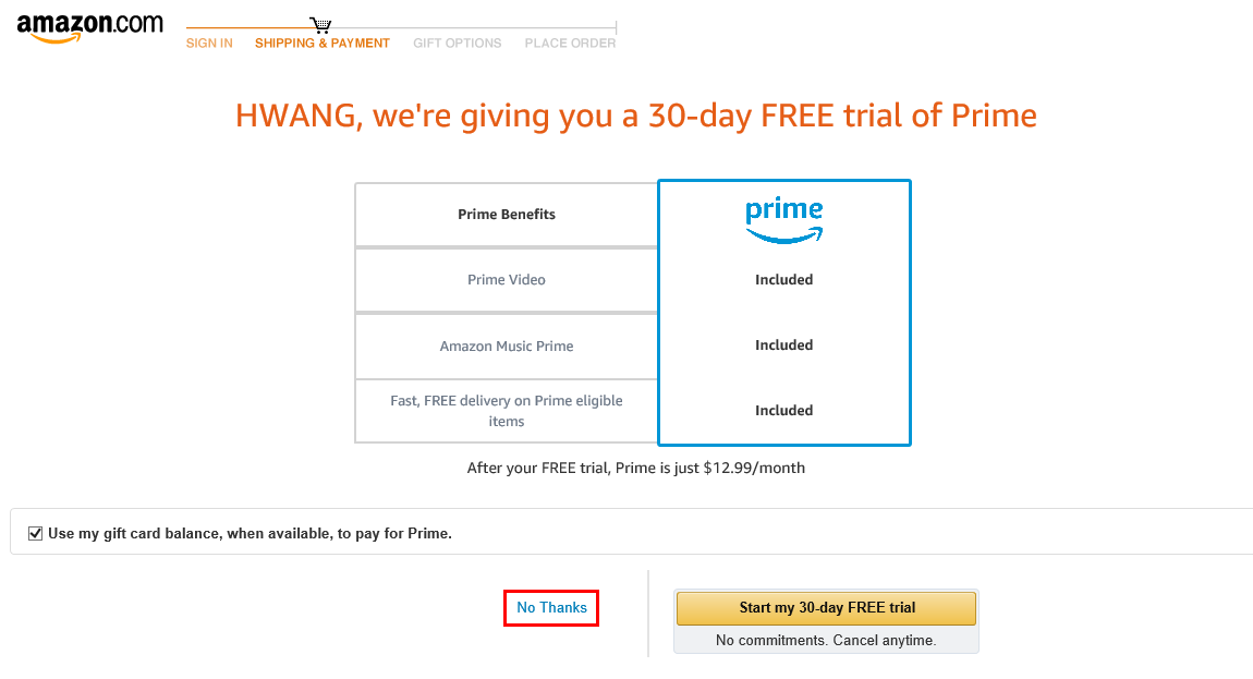 아마존 프라임을 가입하라는 것이나 한국에까지 하루만에 배송하진 않으니 무시합니다.