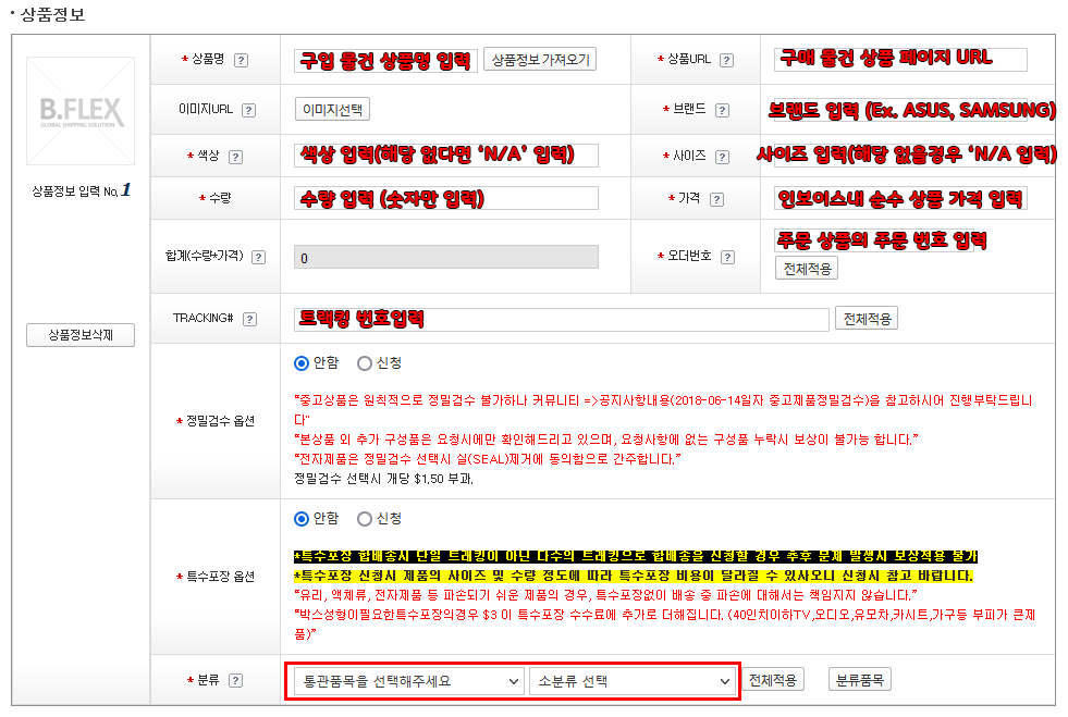 체크하신 후 다른 상품의 정보도 같은 방법으로 입력해주시면 됩니다.