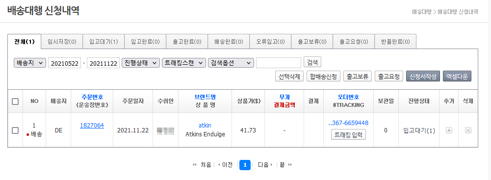 일단은 운송장번호가 뜨지 않았으니 빈칸으로 둡니다.