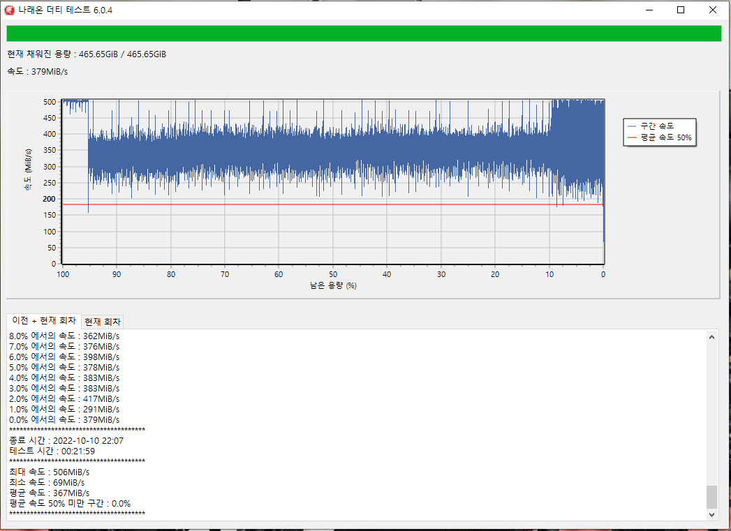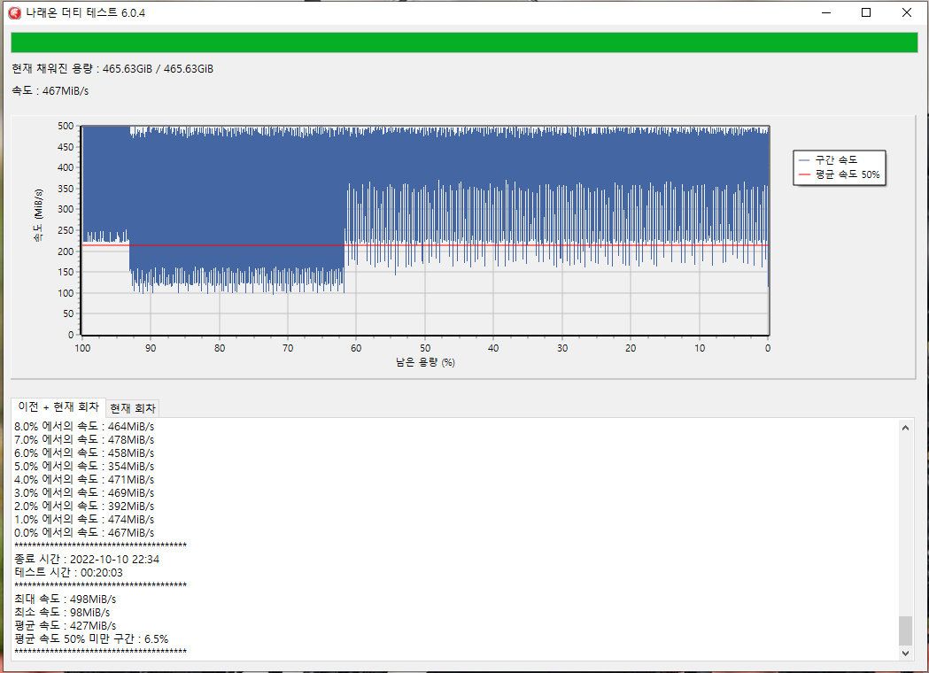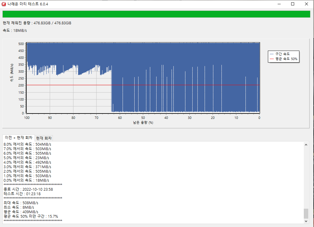 테스트 구간 : 500GB ~ 0GB